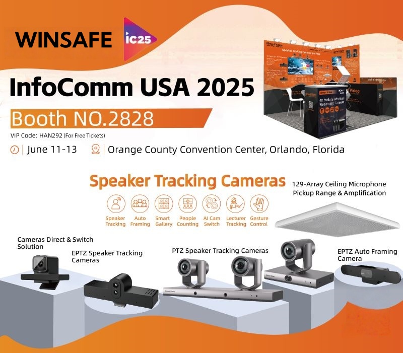 WINSAFE manufacture iSmart as world leading AI-Powered Audio & Video product Designer haeded to the exhibition site in USA. Our new Camera Direct & Switch Solution catches the most attention, which is a solution that can offer you the best visual experience, No matter which corner of the meeting room you are in, and whether you are stationary or on the move, it can perfactly present you front face and delicately capture your expressions, movements and gestures. More details please attention to our notice. The other EPTZ Speaker Tracking Cameras, PTZ Speaker Tracking Cameras, Array Ceiling Microphone, 4K60 4/3” & 1/1.8” 12G-SDI Broadcasting PTZ Camera, normal 4K 30X/20X/12X PTZ Video Camera, 1080P 30X/20X PTZ Video Camera all attracted more visitors. Hope we will offer more good products. See you next year.